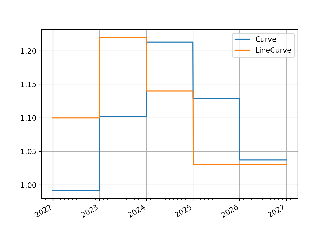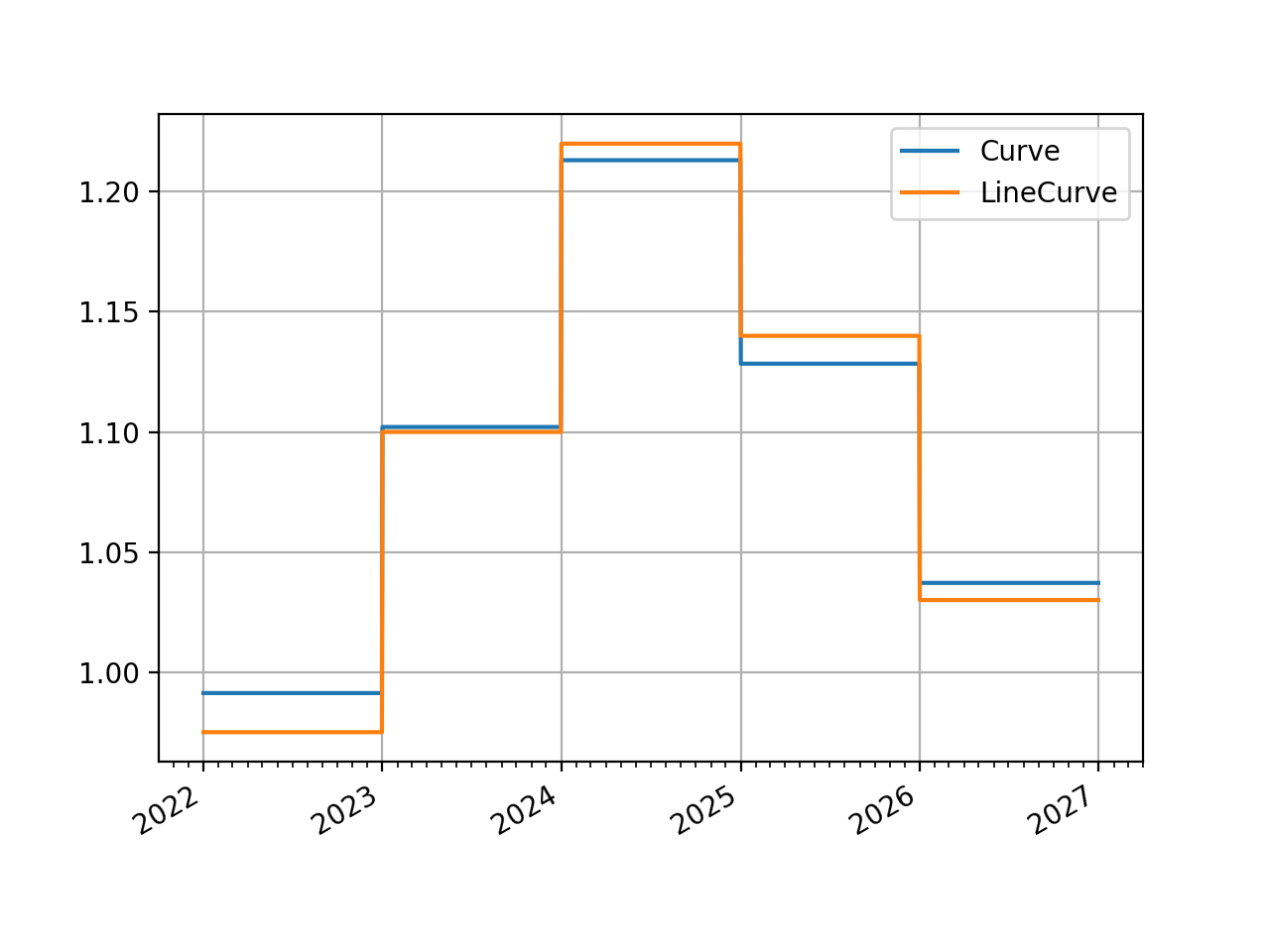 Curve. It produces overnight rates that are constant betweennodes. This is not usually suitable forLineCurve.“linear_zero_rate”: this is a legacy option for linearly interpolating continuously compounded zero rates, and is only suitable for