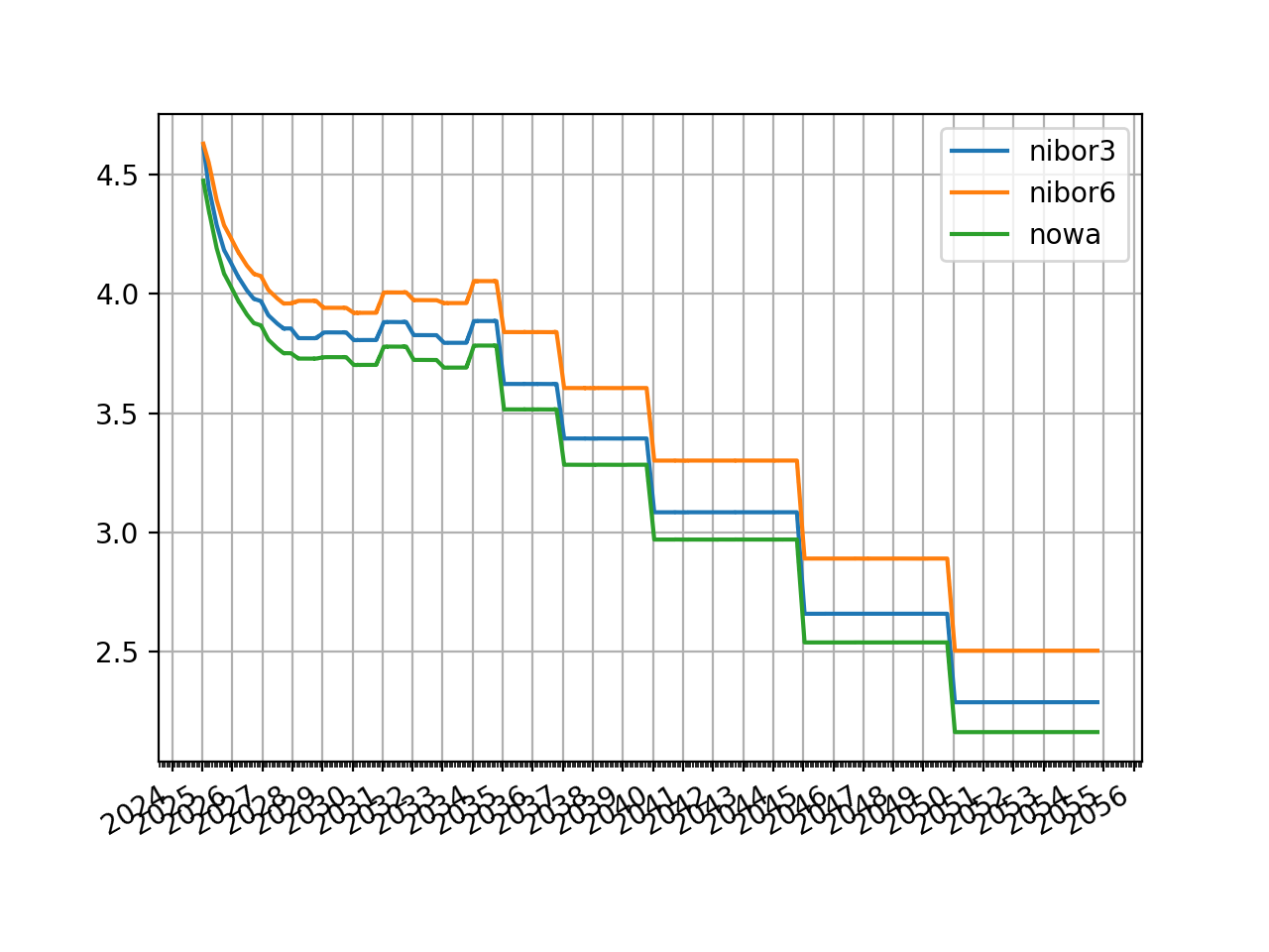 In [17]: ib3_fra = [FRA(row.effective, row.termination, spec="nok_fra3", curves=["nibor3", "nowa"]) for row in data.iloc[1:13].itertuples()]