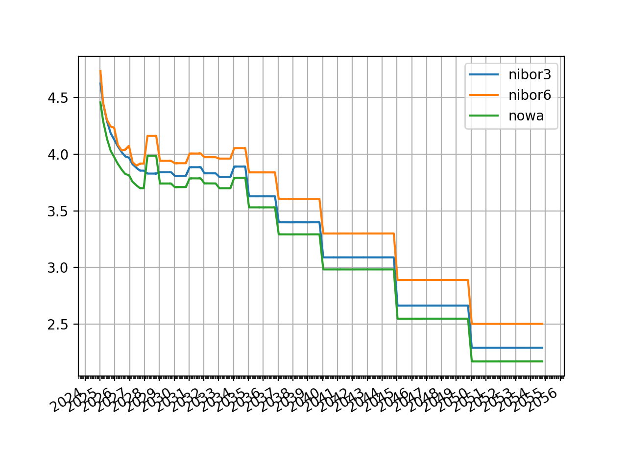 ....: curves=[nibor3, nibor6, nowa],