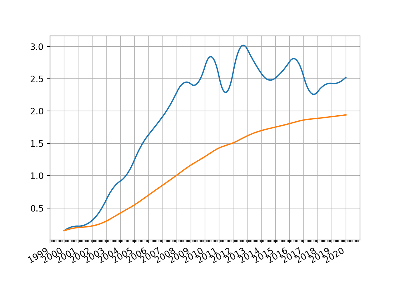 We can plot the resultant curves, which can be compared directly with the EIOPA file.